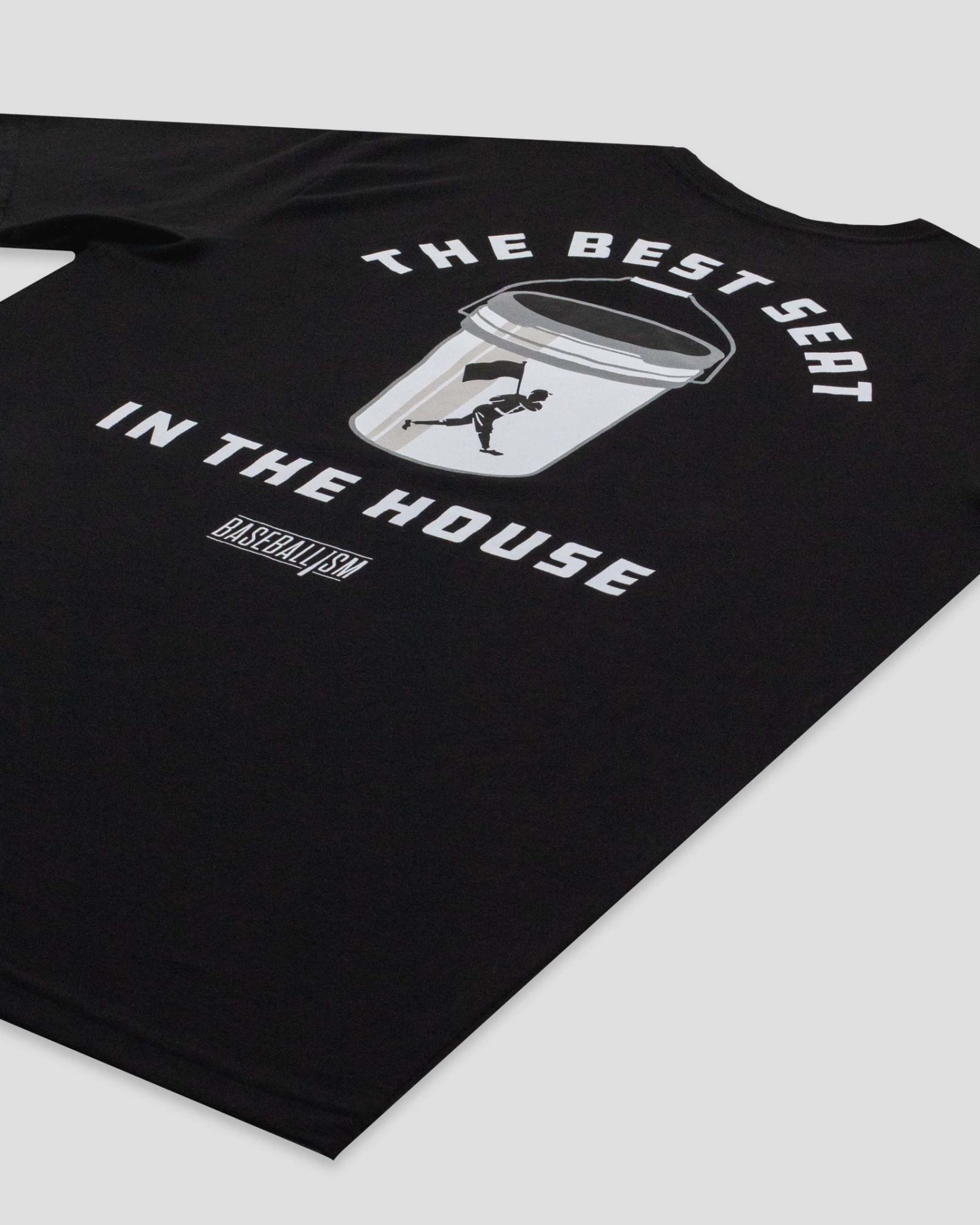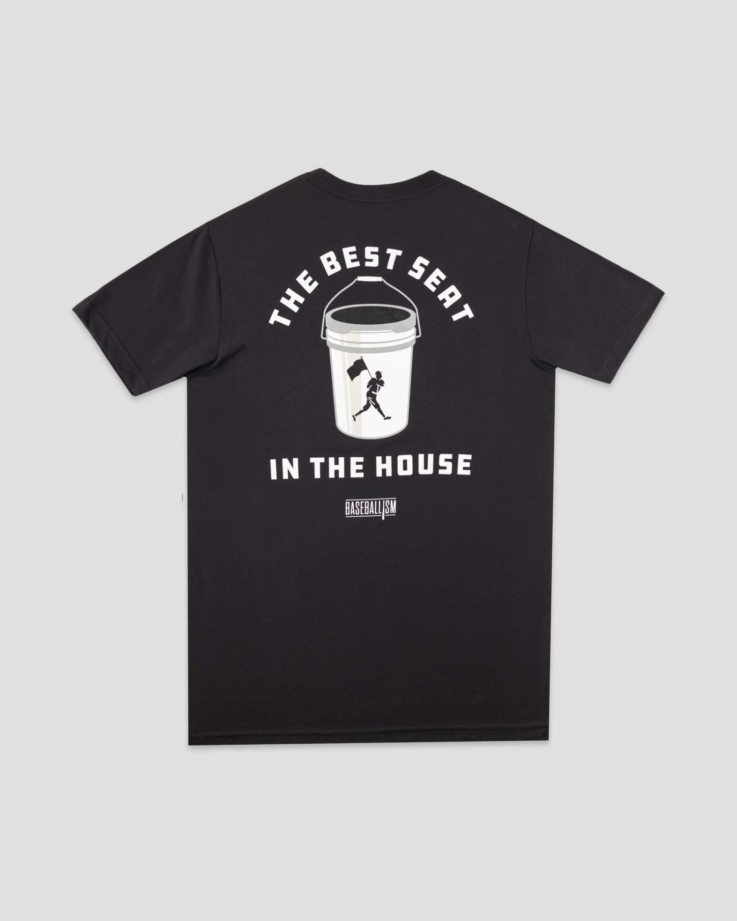 – Vintage Baseballism bat screened on back right of the garment